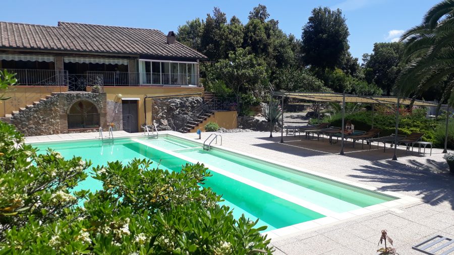 Der Pool ist mit 7 x 14 m groß genug um ordentliche Bahnen schwimmen zu können. Es gibt einen abtrennten Kinderbereich und einen Whirlpool. Der Pool ist rund um die Uhr geöffnet.