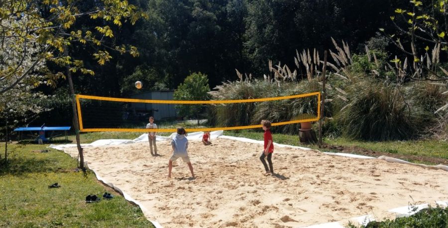 Außerdem findet ihr Outdoor noch eine Tischtennisplatte, eine Slackline und ein Volley- bzw. Badmingtonnetz und Schläger.